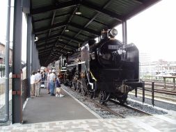 【左】正面玄関をくぐると、最前列に並ぶのは「C59」。九州内でブルートレインの先頭に立った。