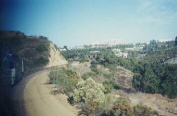 サンディエゴが近づくと列車は小高い丘を登ります。