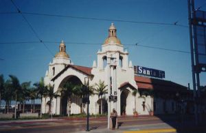 サンディエゴ駅は通常「サンタフェ駅」と呼ばれ、駅舎にも大きく「サンタフェ」と書いてあり、「サンディエゴ」の文字は見当たらない。