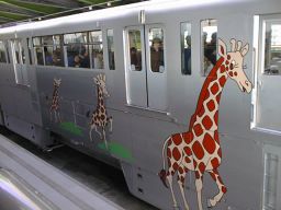全線開業に合わせて登場した動物キャラクター付モノレール。