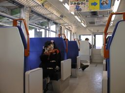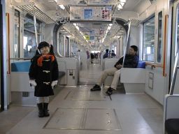 車内は全線開業から2週間あまり経過し、しかも日中時間帯は臨時電車も頻繁にあったので始発駅ではご覧のとおり。