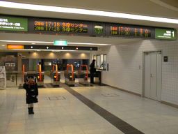 多摩センター駅構内。改札付近には地元の小学生が描いたモノレールの絵が多数展示されていました。