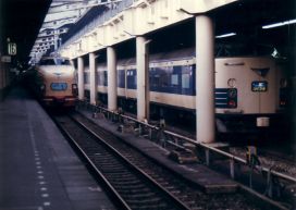 | L特急「白山」(上野−金沢)とL特急「ひたち」 信越線を経由し、横川ー軽井沢間の急勾配(通称:横軽)を走っていた「白山」 一時期は食堂車を連結しており、国鉄一の急勾配を食事をしながら楽しめました。(私も経験があります)