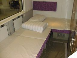 オール2人用A寝台個室。全ての部屋にトイレも完備。展望室を備えたスイートルームもある全く新しい寝台特急です。