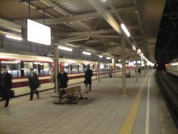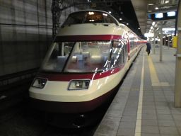 発車5分前。ドアが開き乗車が開始されました。1年半前までロマンスカーの乗車口は2〜3ヵ所に限定され、乗車時に必ず特急券のチェックが行なわれていたのだが、今はどこのドアからも乗車でき、特急券のチェックもなくなった。